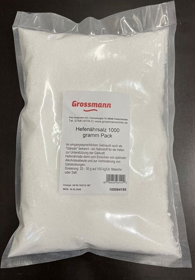 Im umgangssprachlichen Gebrauch auch als "Gärsalz" bekannt - ein Nährstoff für die Hefen zur Unterstützung der Gärkraft.